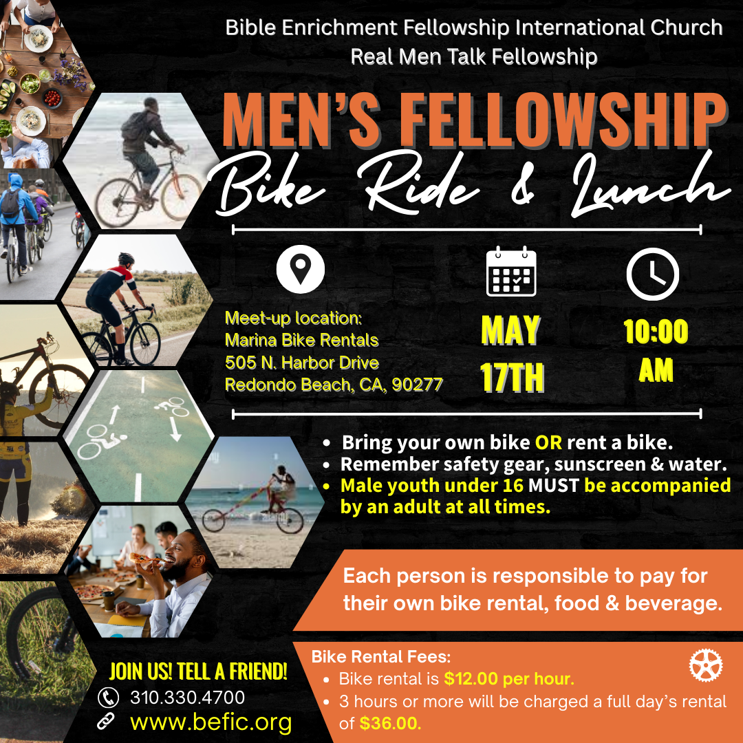 Men’s Fellowship Bike Ride + Add to Google Calendar + iCal / Outlook export Date May 17 2025 Expired! Time 10:00 am - 12:00 pm Share this event